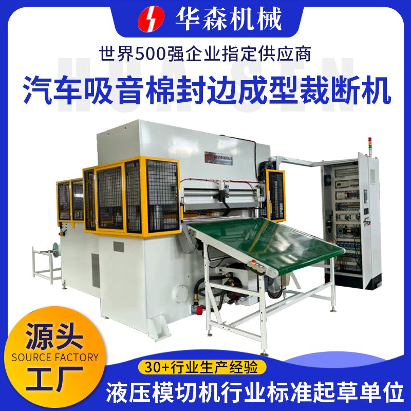 华森汽车吸音棉裁断机适用于卷状材料自动热压成型、冲切生产,对一系列的吸音棉等非金属材料进行连续的自动冲裁作业。通过对卷状材料自动送料、自动热压冲裁后,其成型的物料由人工从出料平台取走。